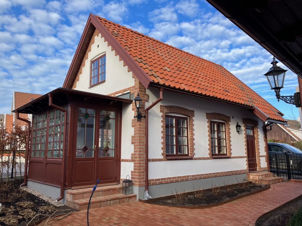 För en privatkund har Wilund arkitekter och antikvarier ritat en restaurering av en sommarvilla i Skåne samt nybyggnad av ett gästhus i tidstypisk stil. Projektet omfattade hel renovering av huvudbyggnaden, rekonstruktion av med tiden försvunna byggnadsdelar som verandor, restaurering av fasadens tegeldekor, ny takavvattning och plåtavtäckningar i anpassat utförande, samt nybyggnad av gästhus i anpassad stil.