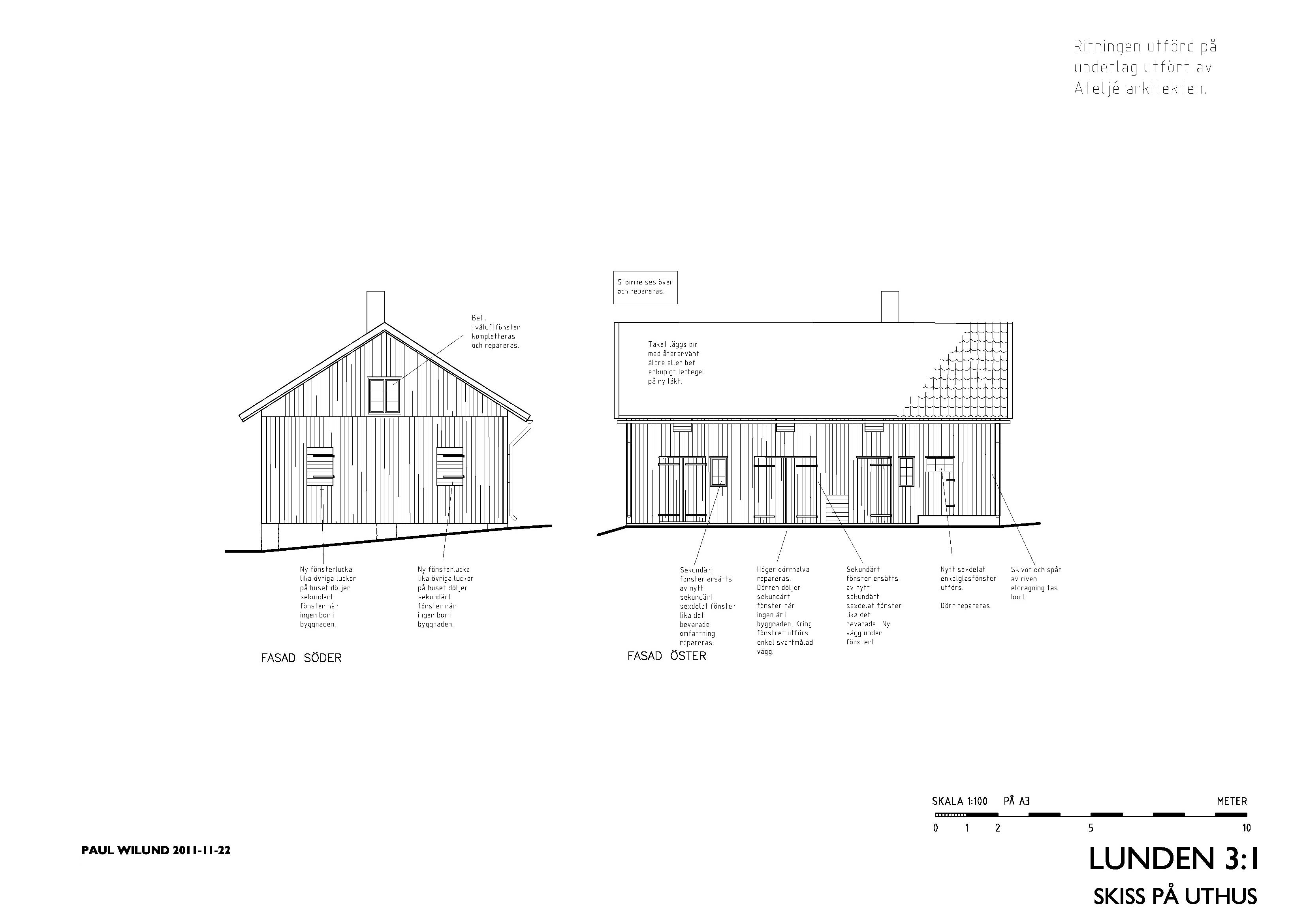 Vi har även utfört skisser för återställande av ett uthus intill dasset.